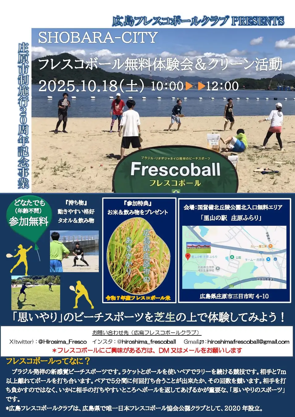 日本フレスコボール協会公認地域クラブ「広島フレスコボールクラブ」が、10月18日(土)に里山の駅 庄原ふらりで『庄原市制施行20周年記念事業』としてフレスコボール無料体験会&クリーン活動を開催。