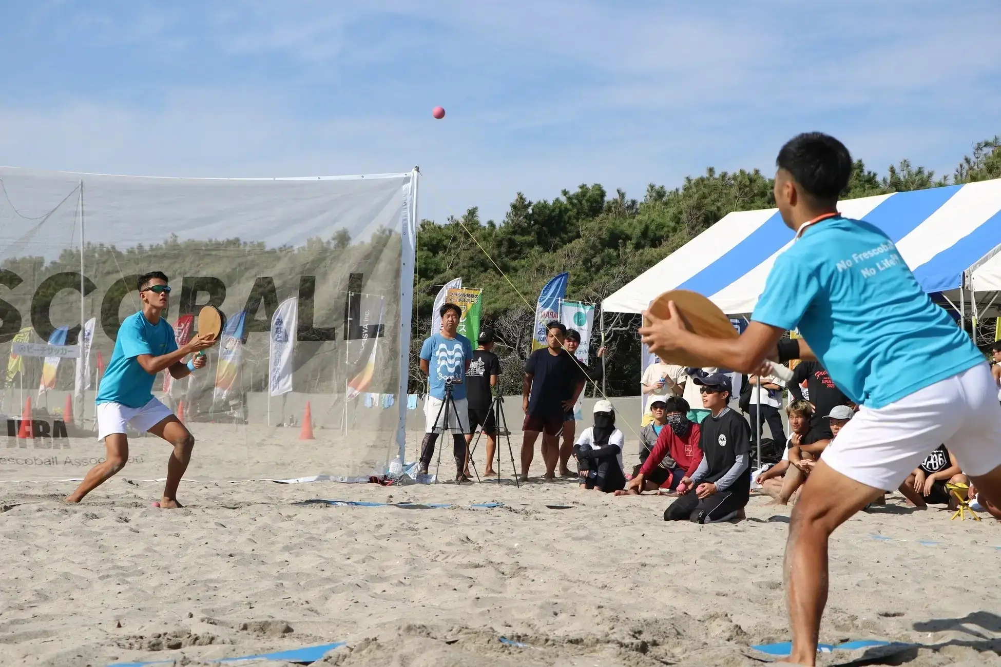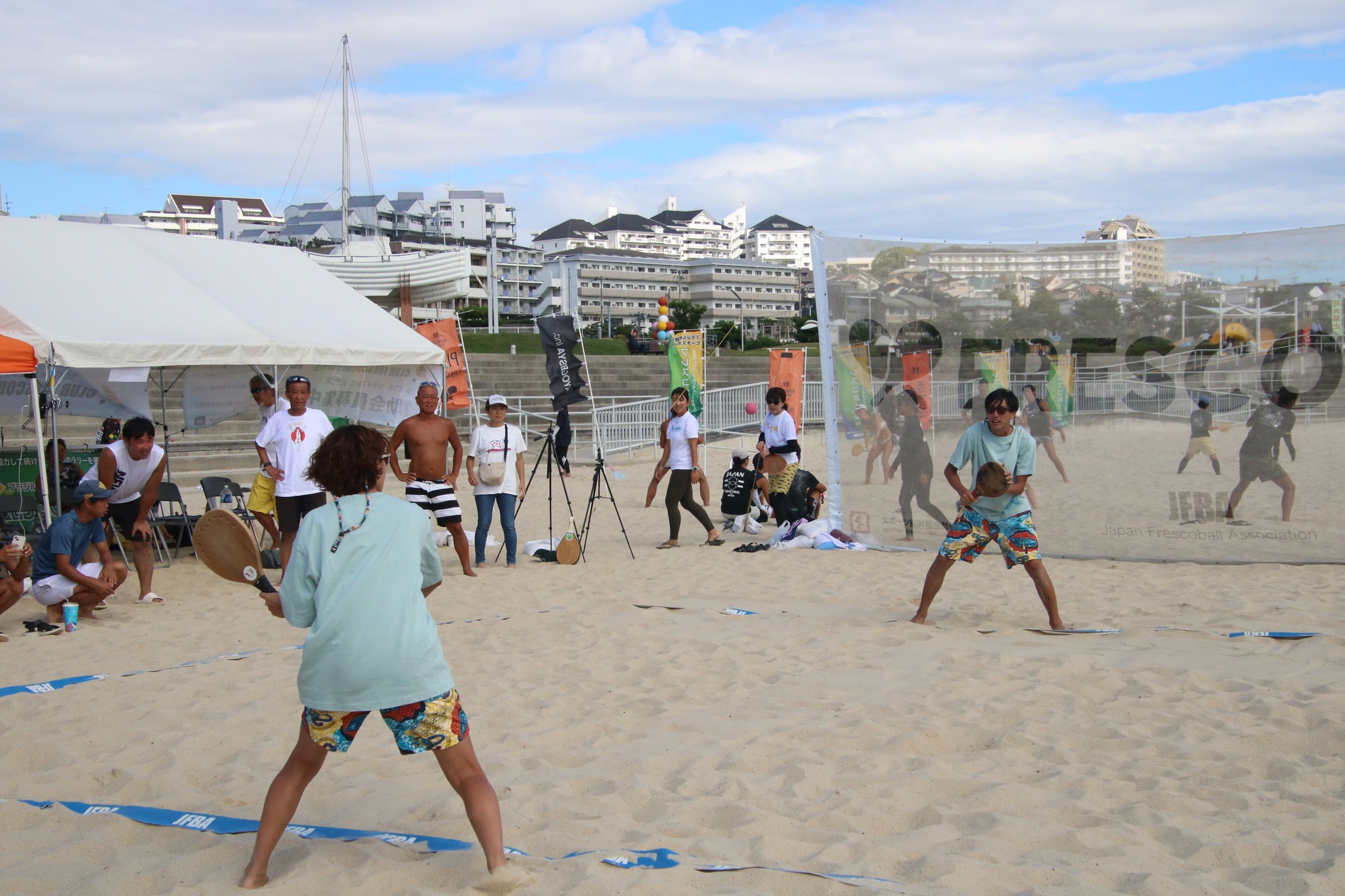 1945年ブラジル・リオデジャネイロ発祥のビーチスポーツ「フレスコボール」。向かい合う二人でラリーを続ける「協力型」の採点競技として世界中で愛されていますが、楽しみ方は多様。今大会は、三人制でラリーを続ける「トリンカマッチ」、公式戦出場3回未満や入賞未経験の選手を対象にした「チャレンジマッチ」、年間ランキングトップ10の選手を対象に抽選でペアを結成する「ドリームマッチ」の三本立てで大会を開催されます。