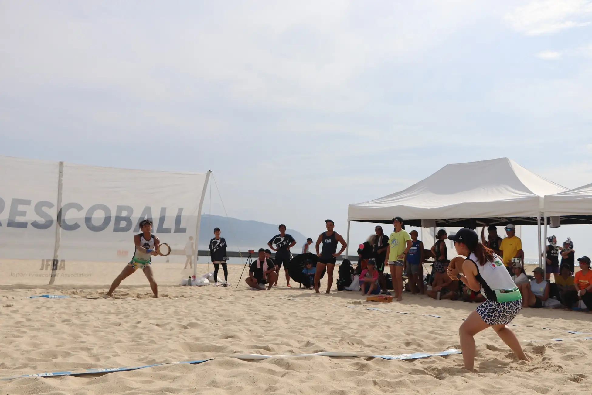 フレスコボールは、ブラジルのリオデジャネイロ発祥のビーチスポーツです。1945年にリオ・デ・ジャネイロのコパカバーナビーチで考案され、現在は世界各地のビーチで親しまれるようになっています。フレスコボールの最大の特徴は、向かい合う2人が競い合うのではなく、協力してラリーを続ける採点競技という点。競技時間は5分間、7mの距離を保って試合を行います。協力してラリーを続ける様子から「思いやりのスポーツ」とも言われ、2025年10月現在、日本全国で28のJFBA公認地域クラブと6の公認学生団体が設立され、フレスコボールを通じた地域コミュニティが形成されています。日本フレスコボール協会は、このスポーツの魅力をより多くの人に知ってもらうために2013年に設立されました。