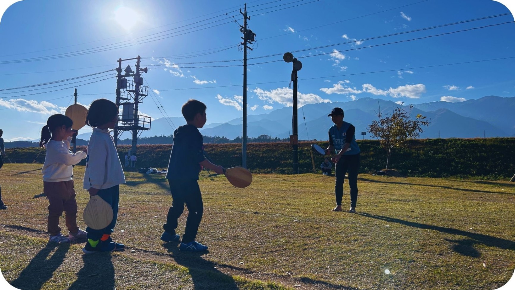 このプロジェクトでは、地域の木材を使って、オリジナルのフレスコボールラケットを作る取組にチャレンジ。発起人は、『FRESCOBALL ALPS』代表でもある間渕将太氏。駒ヶ根市の自然に魅了され、関東から家族で移住したという経緯も持つ一人です。