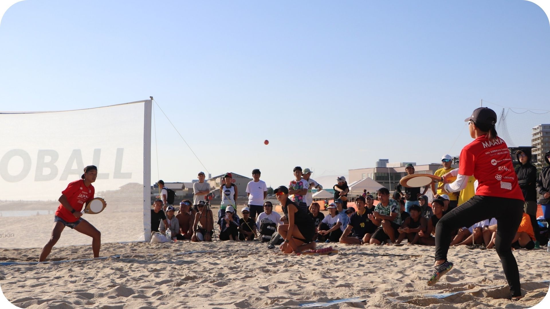 フレスコボールは、ブラジルのリオデジャネイロ発祥のビーチスポーツです。1945年にリオ・デ・ジャネイロのコパカバーナビーチで考案され、現在は世界各地のビーチで親しまれるようになっています。フレスコボールの最大の特徴は、向かい合う2人が競い合うのではなく、協力してラリーを続ける採点競技という点。競技時間は5分間、7mの距離を保って試合を行います。協力してラリーを続ける様子から「思いやりのスポーツ」とも言われています。JFBAでは、国際的なルール統一に向けてリオフレスコボール連盟(FEFERJ)と世界初の国際組織『UAFI』設立に向けて2025年10月に基本合意。世界のフレスコボール界を一つにする動きを進めています。国内では、28の公認地域クラブと6の公認学生団体が登録されています。