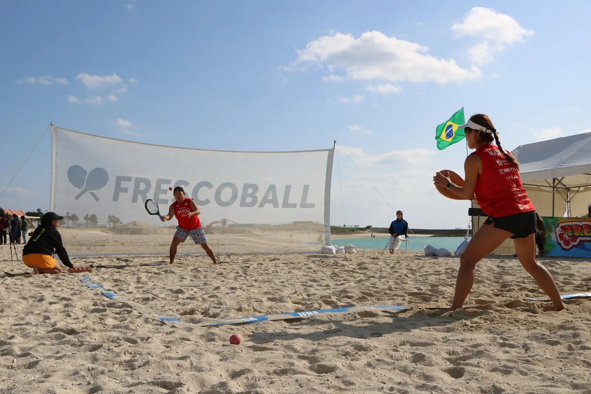 フレスコボールは、ブラジルのリオデジャネイロ発祥のビーチスポーツです。1945年にリオ・デ・ジャネイロのコパカバーナビーチで考案され、現在は世界各地のビーチで親しまれるようになっています。フレスコボールの最大の特徴は、向かい合う2人が競い合うのではなく、協力してラリーを続ける採点競技という点。競技時間は5分間、7mの距離を保って試合を行います。協力してラリーを続ける様子から「思いやりのスポーツ」とも言われています。JFBAでは、国際的なルール統一に向けてリオフレスコボール連盟(FEFERJ)と世界初の国際組織『UAFI』設立に向けて2025年10月に基本合意。世界のフレスコボール界を一つにする動きを進めています。国内では、29の公認地域クラブと6の公認学生団体が登録されています。