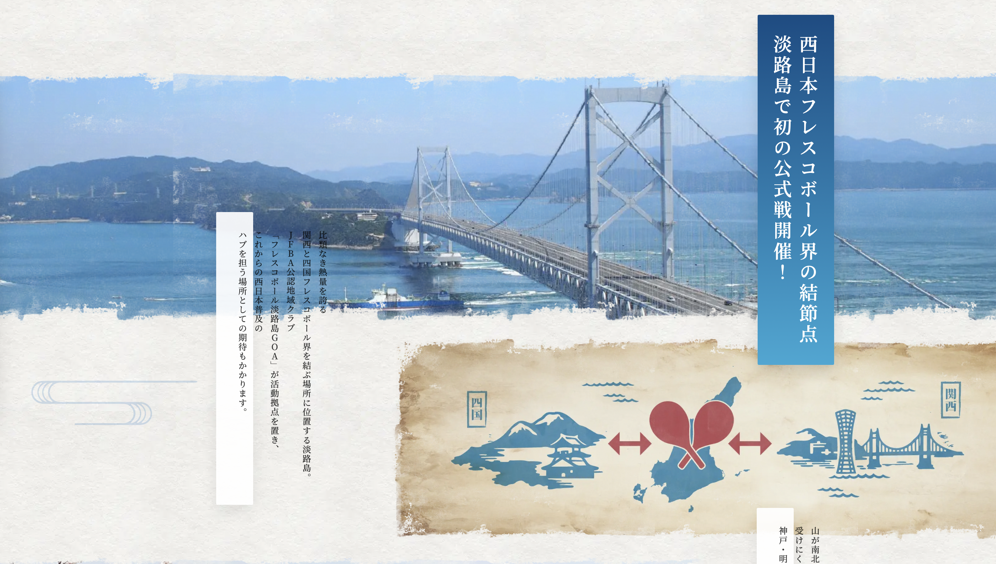 特設ページでは、日本神話に刻まれた「はじまりの島」に着想を得た、トラディッショナルな世界観でフレスコボールと淡路島開催の魅力が描かれています。両日ともに体験・観戦は無料。フレスコボール淡路島GOAでは、3月28日(土)13時〜16時でクラブ公式戦体験会も企画中。老若男女誰でも楽しめるのがフレスコボールです。ぜひこれを機に、新しいチャレンジをしてみませんか。